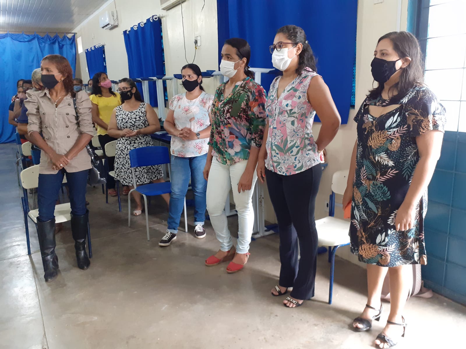 Dando seguimento a Secretária Ulisevânia Sales da Silva, agradeceu a presença de todos, falou da importância e da necessidade de estarmos sempre aprimorando nossos conhecimentos, ainda frisou, quanto ao retorno presencial no formato HÍBRIDO, sendo que o trabalho e o comprometimento de cada um, enquanto servidor da rede em cumprir as normas e os protocolos de enfretamento da Covid-19 dentro de cada Unidade Escolar. Ainda deixou a Semed a disposição de cada servidor, deixando claro que o seu olhar para rede é voltado ao humano, e que sempre terá a preocupação em atender as necessidades dos mesmos. Dando seqüência nas falas, a Coordenadora da Alimentação Escolar, Balbina Silva Costa, e a Técnica de apoio Laélia Coelho Costa, apresentaram – se e desejaram a todos uma boa formação.