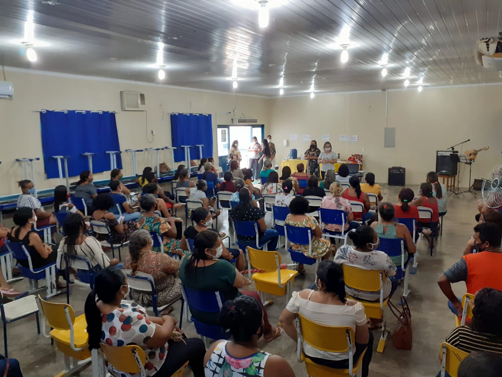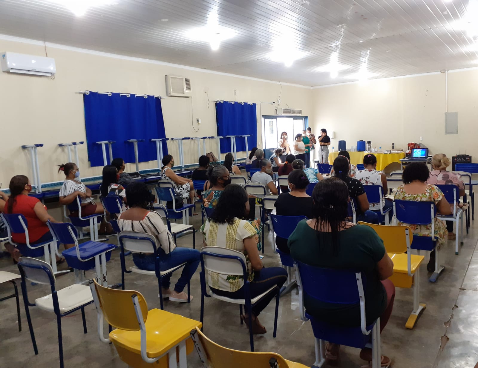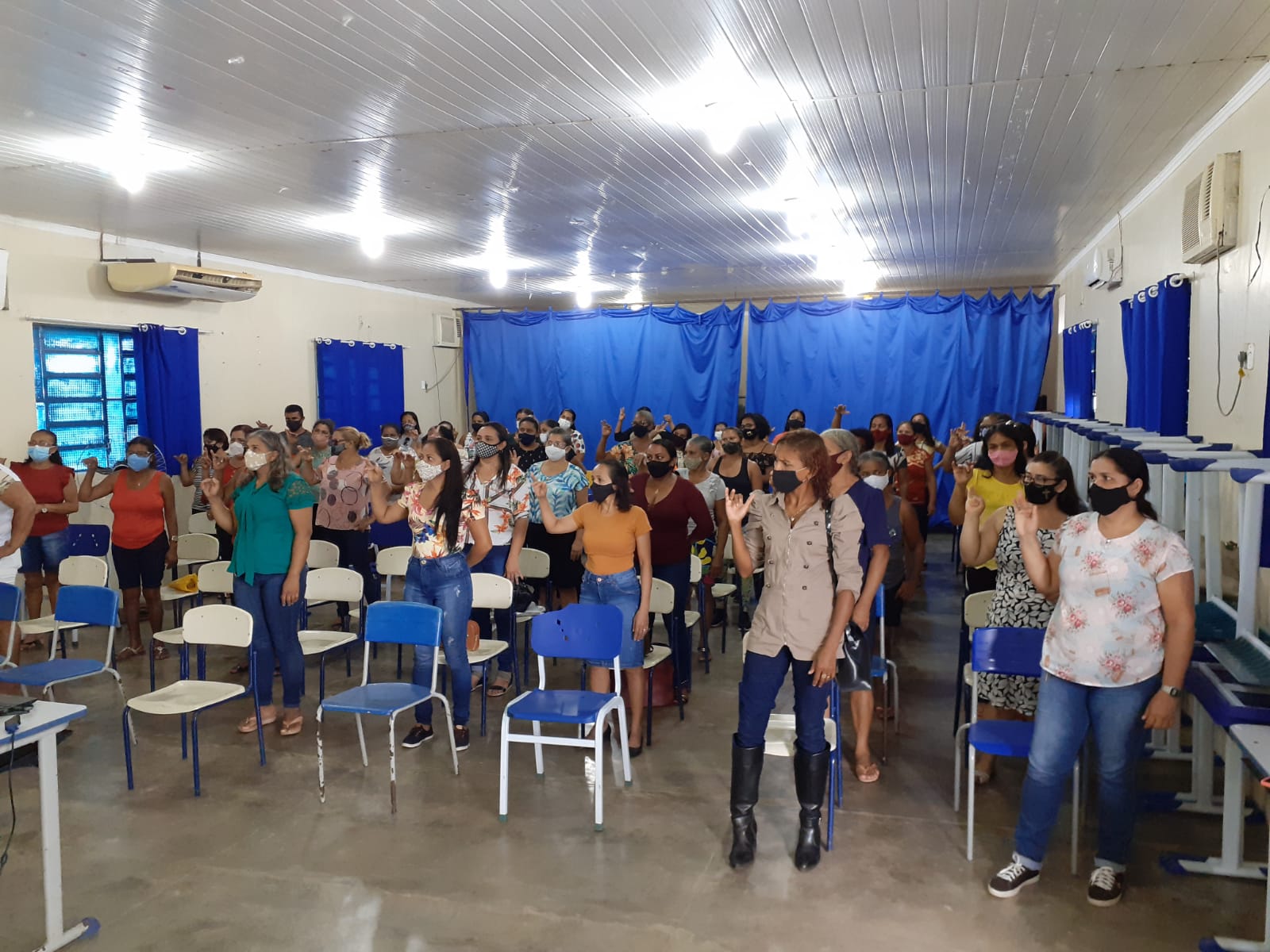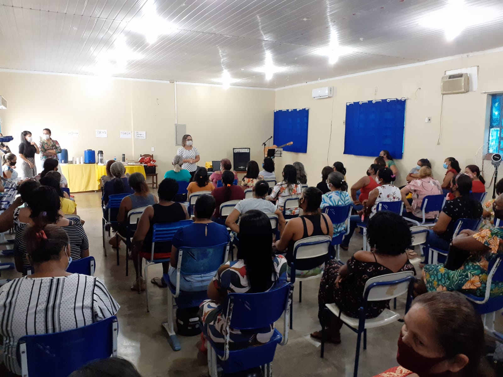 A Secretaria Municipal de Educação através do Setor da Alimentação Escolar – SEMAE realizou, nesta quarta feira (07), a formação continuada para Merendeiras e ASGs, o referido evento, ocorreu no auditório do Colégio Estadual Leônidas G. Duarte. Dando início as atividades, os servidores da SEMED, professora Maria Rangel e o professor de música Lázaro Silva, realizaram o momento devocional e motivacional com os presentes.