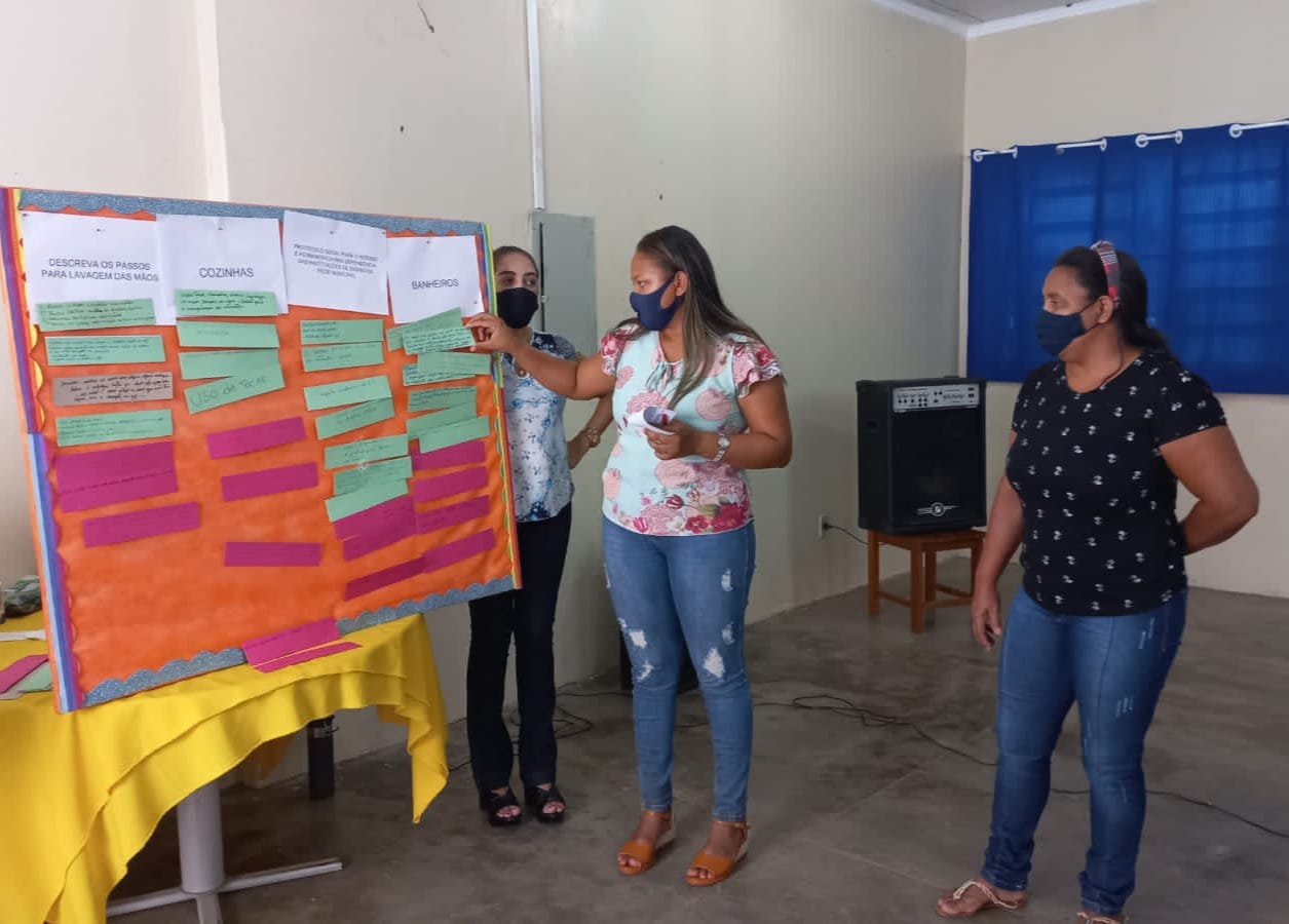 Como palestrante o servidor da Rede Municipal de Saúde, José Hélio Gonçalves, da vigilância da Covid-19, o mesmo abordou aos protocolos de higiene para o retorno das aulas, em seqüência a Nutricionista Haysa Fernandes da Silva, realizou uma oficina para a indicação dos protocolos de higiene corretos e incorretos, a serem aplicados nas escolas neste retorno de aulas e ainda fez uma breve explanação sobre a Resolução 06/2020, PENAE.
