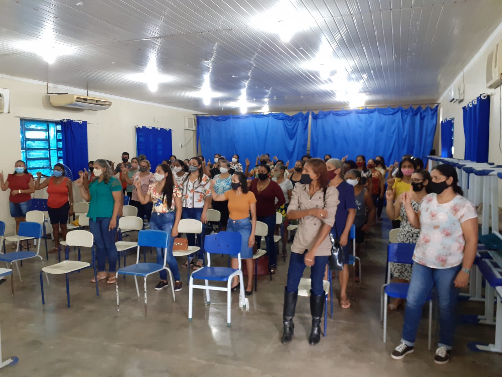 A Secretaria Municipal de Educação através do Setor da Alimentação Escolar – SEMAE realizou, nesta quarta feira (07), a formação continuada para Merendeiras e ASGs, o referido evento, ocorreu no auditório do Colégio Estadual Leônidas G. Duarte. Dando início as atividades, os servidores da SEMED, professora Maria Rangel e o professor de música Lázaro Silva, realizaram o momento devocional e motivacional com os presentes.